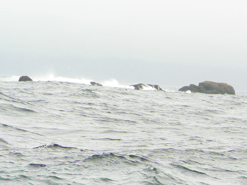 When hand steering, you use your magnetic compass, and based on your heading, keep the boat pointed to a heading that will keep you on course. It takes a great deal of concentration to keep the boat within a ten degree range, so it takes another person watching the seas for hazards, etc. So, for about six hours, we both were on watch. Captain was steering and I was watching. Imagine our delight, when we slipped through Hole in the Wall, between Tatoosh Island and Cape Flattery. The seas on the other side of the hole were tiny little choppy seas – nothing to speak of, and just behind us had been the SE’ly winds and the SW’ly swells. And the really good news? We were now on the Strait of Juan de Fuca and we had made it off the ocean – finally!! Yeah!!