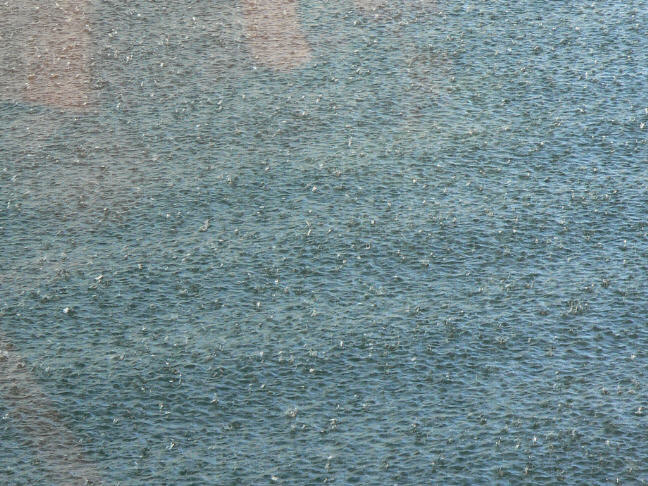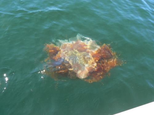 One very interesting phenomena, to us, were the jelly fish. The Moon Jelly Fish is not poinsonous, thankfully, as people were swimming whenever the sun came out. And that was often upon their arrival, so they didn’t know that when it was overcast or very cloudy, up from the deep came thousands and thousands of these little Moon Jelly Fish. They were so dense that we waited until sundown, when they would “go below” to run the generator, as we knew they would totally plug up our generator sea strainer in short order.