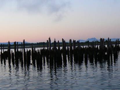 You can see the promise of sunrise in the picture of the old pilings. The pilings are in as good a shape today – as the day they were driven into the seabed – below the waterline. The pilings and the buildings they supported above the waterline are another story. We learned this past week, in our Astoria Trolley trips, that the pilings represent property lines. The pilings can still be built safely on today – though it hardly seems likely, and to remove them would take years in courts for permits, so they stay where they are.
