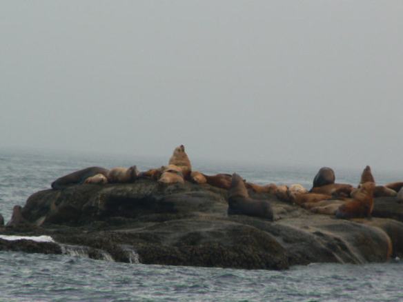 These sea lions, on a rock just off Tatoosh Island, did lift their heads and note our departure. So long, boy and girls!