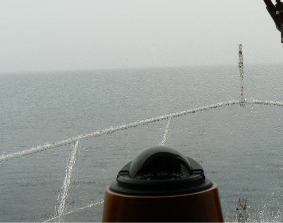Our destination is Grays Harbor. Forecasted conditions are for the seas to lay down. We have light and variable winds. This leg is about 105 miles. We aren’t making as good a time as we would like. We have a negative one knot, or so, current working against us. We are about 3 miles off shore, and it is not visible at this time. Maybe not gray – more whitish gray -maybe even whiter – is that better? Not really.