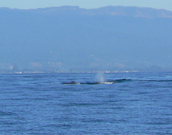 For the entire voyage south I have been watching for whales. After all, we are all headed to Mexico for the winter! But we had seen only one whale and it was too far away to get a picture. The day out of Half Moon Bay was quite different. We got some serious whale action. Still pretty far away but I did manage to get a couple great shots. They were very active, lots of blows and breaching and huge splashes – of course those are hard to catch on camera. The problem is you need to look with your eyes, as it is hard to track the whales very well through the lens of a camera. If the ocean is totally flat it’s easier as you can see their wake, but the ocean was not flat, so no joy in that method. By the time you see the spout or them breaching , getting the camera to the spot, focused, etc…it is pretty tricky.