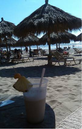 When we weren’t going to town, we took slow and easy mornings. After a late breakfast we sit on the aft deck and soak up all the sun and warmth we can. About 11:30 every morning an ocean breeze comes up and it is down-right chilly. That is our clue it is almost time for lunch. After lunch it is time for the recovering patient to take a nap. At first our forays away from the boat were to the beach. The walk to the beach was a big outing, and we would sit under an umbrella, soak up a little sun, and people watch.