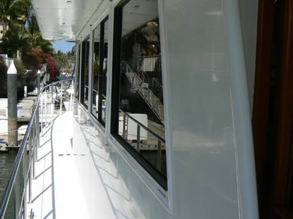 You haven’t seen all the great things happening on DESERT VENTURE while Bruce was in recovery. She got a full wax and polish. And isn’t she all pretty and shiny – this, just after a full day of proper boat washing by Noel. Noel! You are the best! I think D/V is smiling here. Don’t you? She might be humming, “I’m so pretty…”.