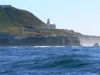 Here is a closer look at the lighthouse. Isn’t that light awesome? Sailors count on the light for safe navigation. We felt a huge sense of relief as we passed, as it marks (at least in our minds) the delineation of North and South California, knowing that nice cruising was just around “the corner” – and it was!
