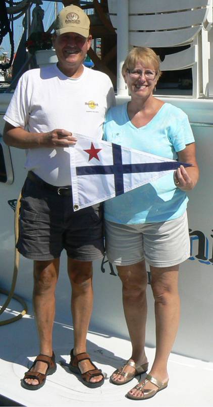 Ken and Sylvia expressed a wish to exchange yacht club burgees, and introduce our yacht clubs to each other. Needless to say it took awhile to get us all back together with burgees in hand.