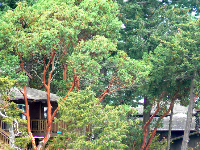 I love the beautiful red limbs that reach to the sun. In the more heavily treed areas, on some of the beaches and hills of the Gulf Islands, the limbs will grow straight out, then up, and then however is necessary to find the sun. These trees are true sun worshipers!