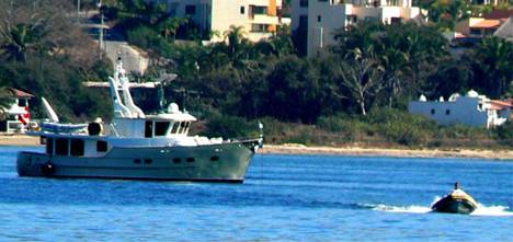 The fuel dock is off to the right down one of the fingers. We pulled alongside the dock and a young woman assisted us in tying up. Bruce ordered fuel that would top off all the tanks. Oops! They didn’t have enough fuel. This isn’t what we wanted – or expected – to hear. We also didn’t want to take the last drop of fuel in their tanks. We did not want to suck up dregs of stuff off the bottom of their tank that would then foul our tanks. He agreed to take enough fuel to fill the two after saddle tanks and the day tank. It left about 100 gallons in their tank and we hoped it was enough not to disturb anything that might be sitting on the bottom of their tank. It seems to have worked out for us. We had no problems with the fuel. Done with the fueling, we headed out to Punta Mita for the rest of the day. Punta Mita is in the northern part of Banderas Bay. It’s a nice area with five star hotels on the beach.