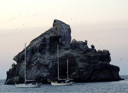 We had more daylight than our trip in December and arrived in time to relax before dinner. These two sailboats were tucked into the anchorage spot found on the cruising charts. I thought they made a great foreground for Las Monas. The sky is just starting to show signs of sunset. And of course, all the birds were there, as expected. They live there! Sleep at Isla Isabella was great, just like in December. On both occasions we were surprised at how nice it was, considering its location.