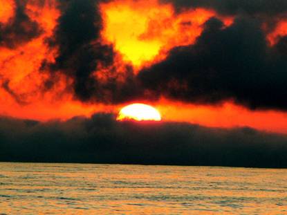 We were up and underway early – with enough light to watch for traps in the anchorage. Our second and last day out of Mazatlan was longer and we wanted to arrive in daylight at Marina Mazatlan. The sunrise was breathtaking! Try as I might I could not get the sunrise sun color right. This one came the closest.