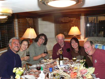 We had numerous Gastronomic Gatherings! You know – where lots of good friends get together and eat, drink, and talk about what has been happening in their lives, and – of course – about boating! It shouldn’t come as a surprise that most of our friends have a boat; some live full time aboard and others spend a lot of time aboard – so there’s plenty to talk about. How is the boat running, what projects have you been doing, where have you been, where are you going, pass the wine, pass the food, etc…lots of chatter, laughter, and happy times. The first event was the day after arrival. We had a full boat!